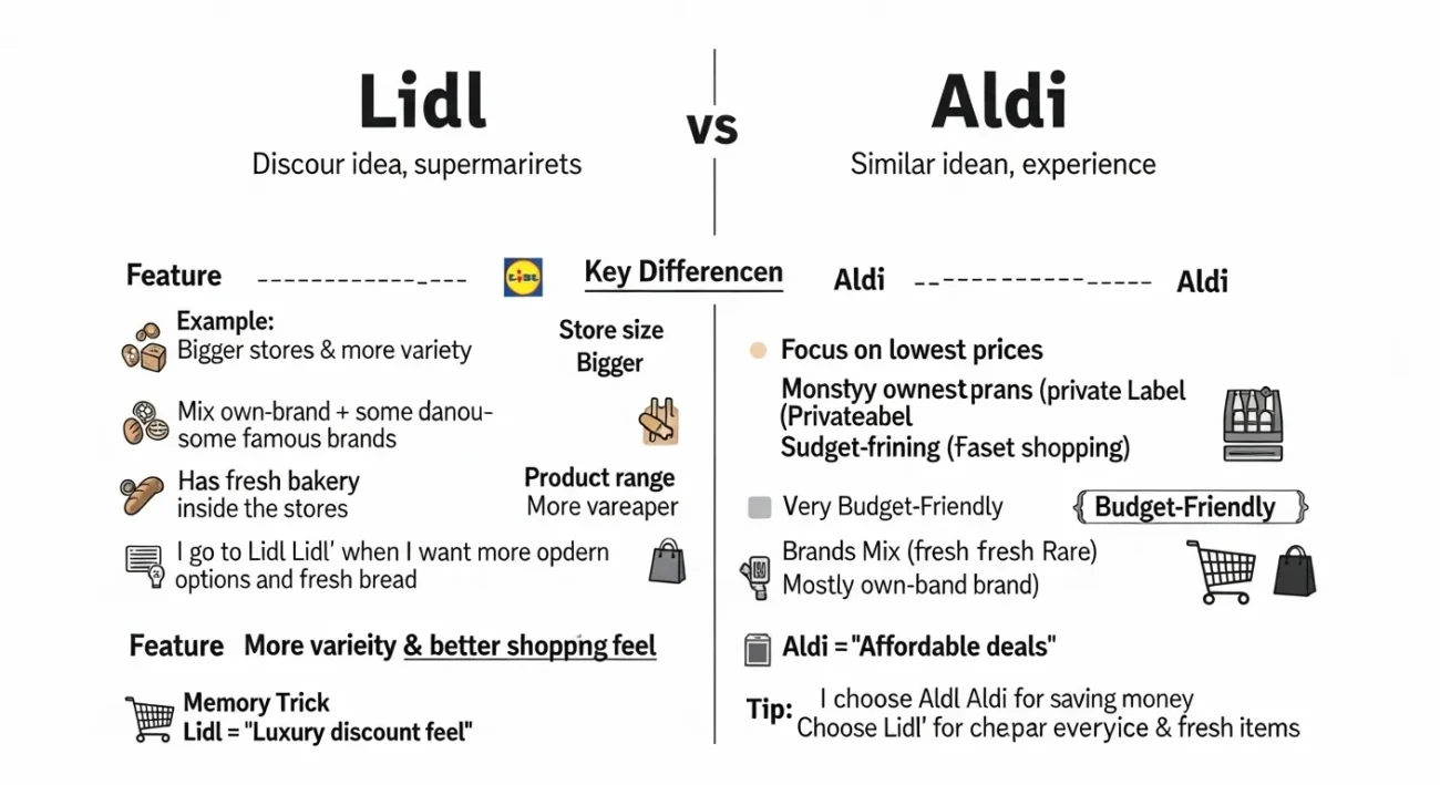 If you are wondering about “Lidl or Aldi,” the quick answer is that both are budget supermarkets, but Aldi is usually cheaper while Lidl offers more variety.