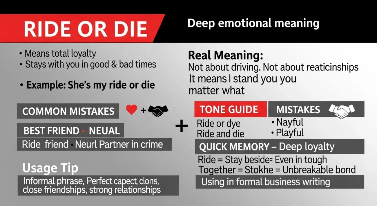 Ride or die is more than just a catchy phrase. I remember hearing it in a song and thinking it sounded intense. Later, I understood its emotional meaning. It describes someone who stands beside you through every challenge.