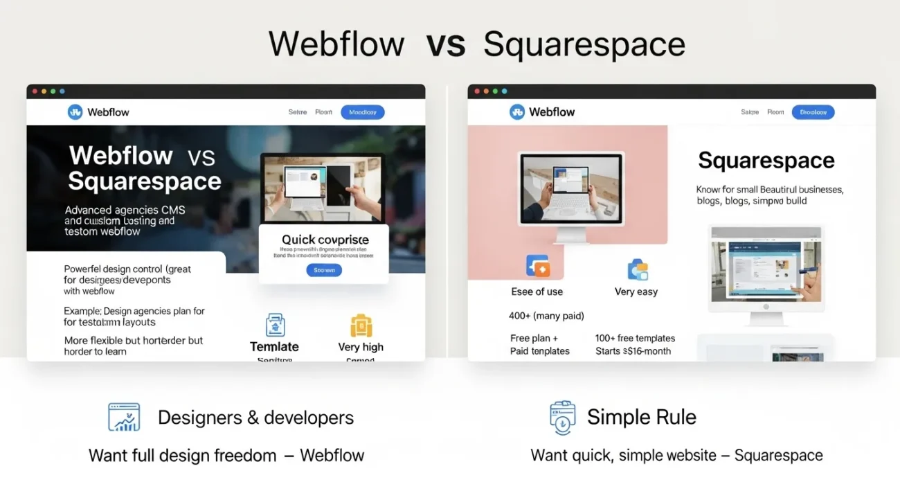 In simple terms, if you want an easy and fast website builder, Squarespace is usually the better choice. if you want deeper design control and advanced customization, Webflow is the stronger option.